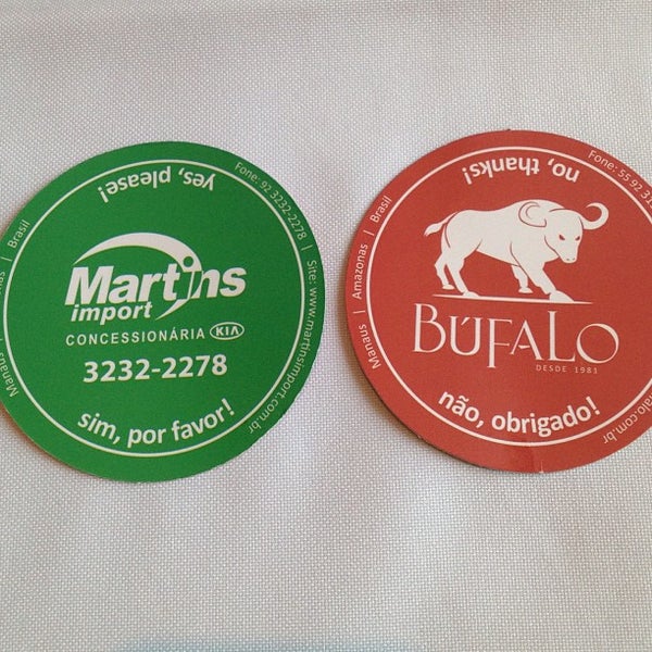 Where I grew up in Brazil they had steakhouses where all you had to do to indicate whether you wanted the food they brought out, was to flip a little card to the green or red side to indicate yes or no. Like this.