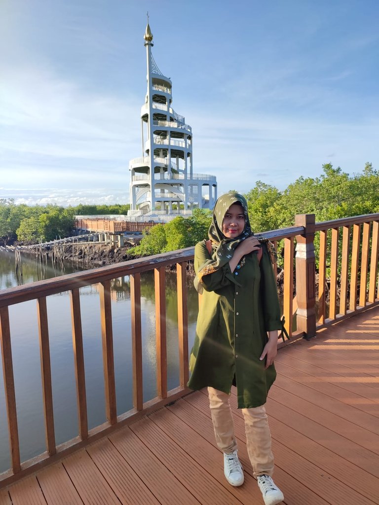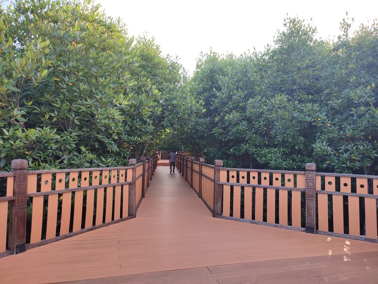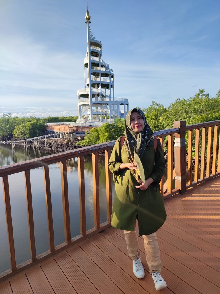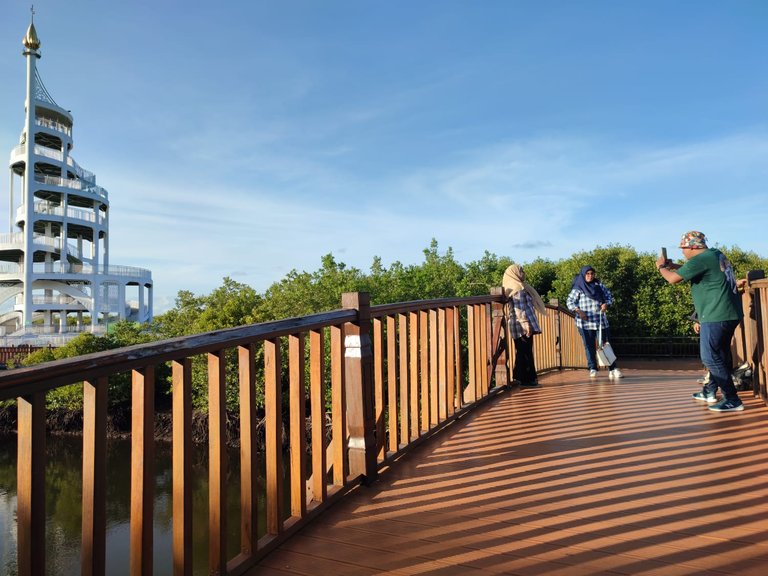 Behind the bridge there is also a viewing tower, with a unique circular design and on top of a building resembling the tip of a golden spear, visitors in this mangrove forest can see another beauty from the top of the tower. However, because it was late afternoon and I was also getting tired from traveling quite a distance by riding our motorbikes, so we decided not to climb the Tower, hopefully in the future I will have time to explore this place again.