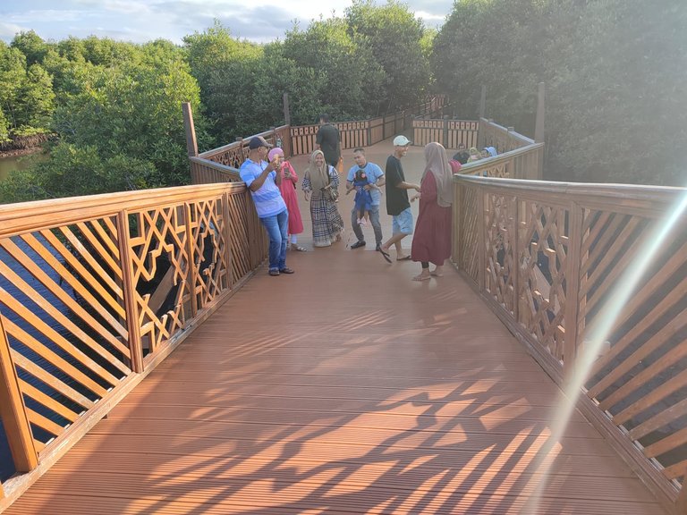 After resting, we continued our journey to find lodging first so that our luggage would not burden the next step. When looking for lodging in the City, we accidentally passed the Mangrove Forest Tourism object in the City. In addition to Langsa City, there are also mangrove forests around my city, but there are some significant differences here, one of which is the design of several buildings in the middle of the mangrove forest. If in my city, the mangrove forest is made only by connecting ordinary wooden bridges that seem classic, in contrast to several buildings in the middle of the forest in Langsa City. The building here has a classic, luxurious impression and has an attractive and unique design into one.