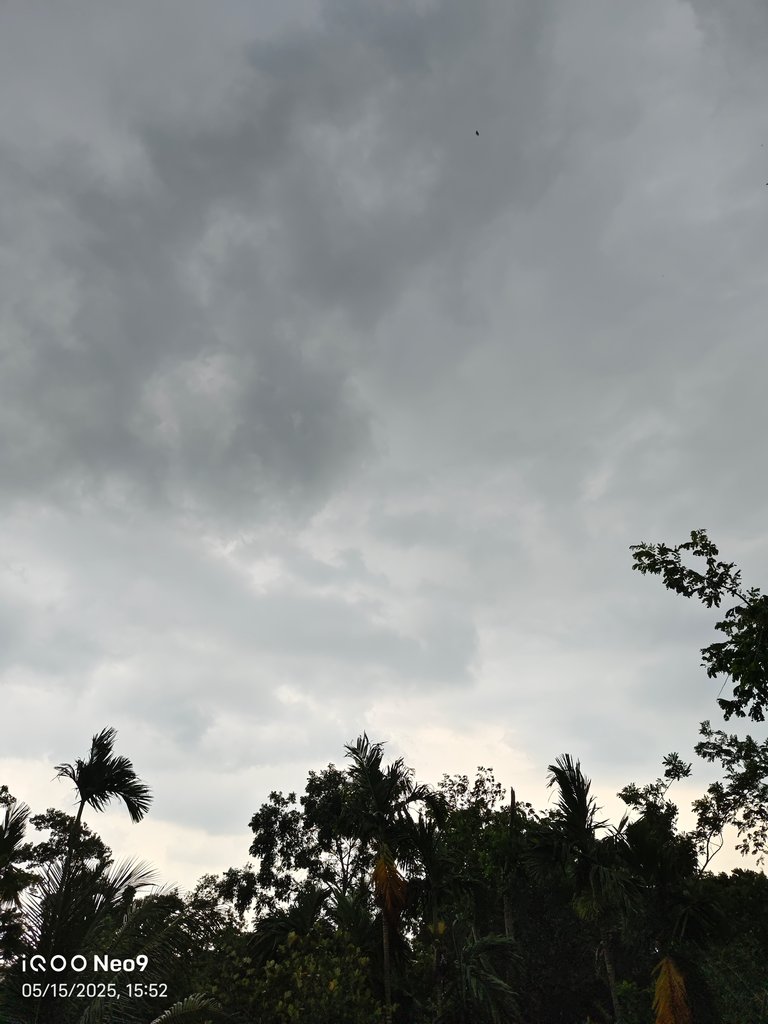 Today, while resting beside my small hut, I suddenly noticed the sky turning dramatic and heavy. This photo captures the exact moment when nature began to shift—an eerie calm just before the chaos of a weather disaster. The dark clouds, the still trees, and the quiet atmosphere spoke louder than any thunder. I also recorded a video showing the moments right after this photo, where the wind started and everything changed.