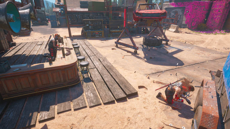 Then I reached that body from where I could see only two more highwaymen were left in the outpost and I shot the one in a way so the other one would notice the incident and go for the alarm.