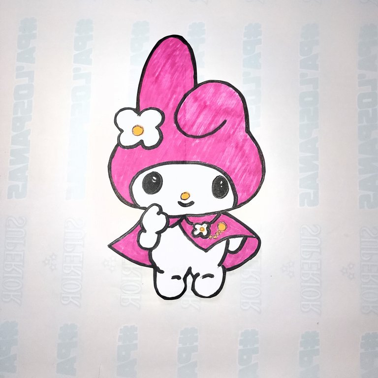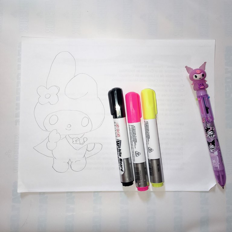 En una hoja de papel Bond reciclada, realice el boceto del dibujo que realice, en este caso de "My Melody".