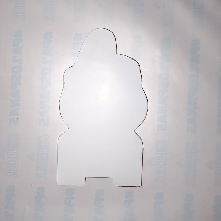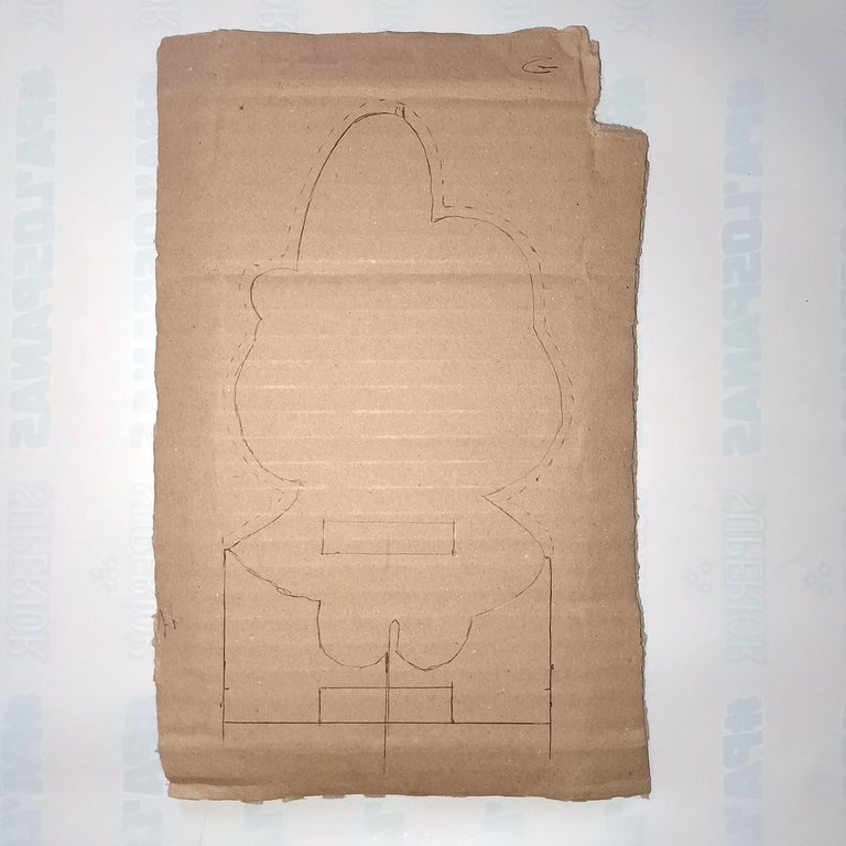 Marqué en la parte de abajo del diseño, lo que será el soporte. Busque el centro del diseño y marque 10 cm de ancho y de largo 6 cm. Las patas son de 3 cm de ancho. En la parte de arriba, le dejé medio centímetro por todo el borde del diseño.