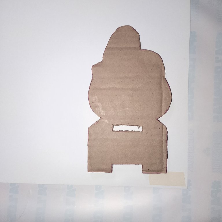 Recorte dos piezas en cartón y con la ayuda de la pega blanca, uno las dos piezas. Y como pueden observar, le abrí una abertura a 4 cm del borde de la separación de las patas y del mismo ancho que dicha separación.