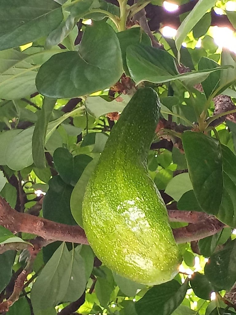 Hoy me di cuenta que mi árbol de aguacate tenía un hermoso fruto en sus ramas, pero solo uno, no tiene más, pero aún así estoy feliz con esta tremenda sorpresa.