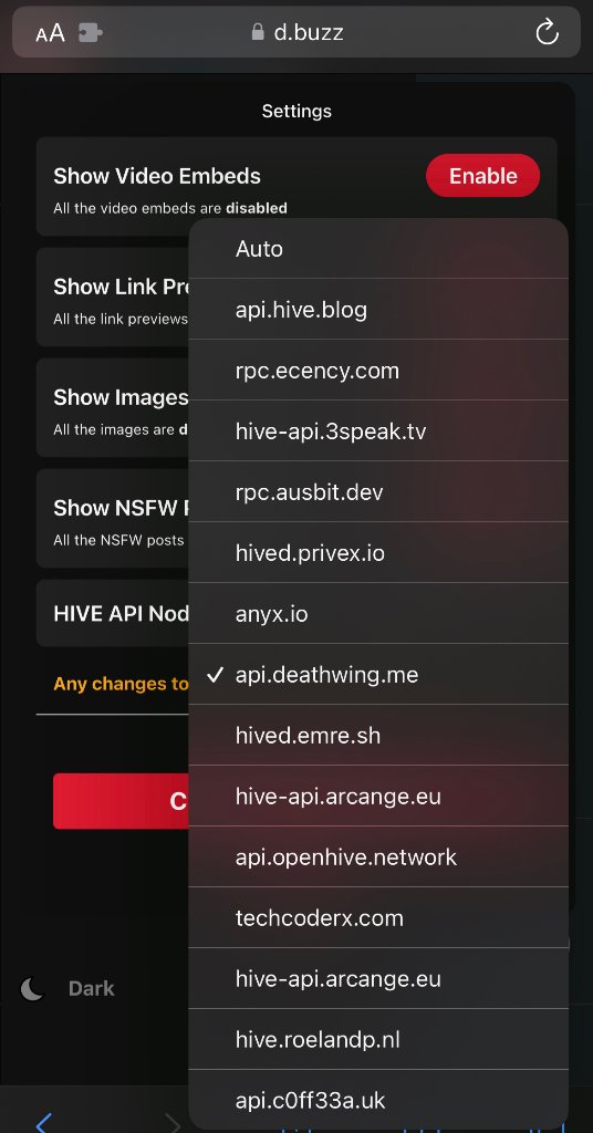 torrey.blog (59)in DBuzz • 2 years ago More Hive API nodes to choose from! Thanks @chrisrice and the dBuzz team. Posted via D.Buzz