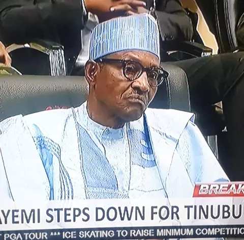 I could not post a vidoe of the BAT unable to flip pages of written address while adressing the party But here Nigerias president reaction while he was on stage.