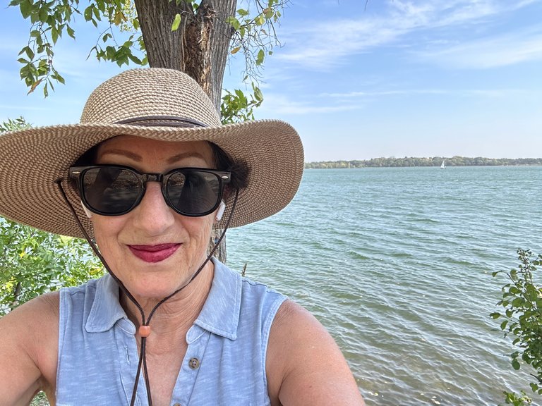 We had a hot and breezy early fall day yesterday. I donned my hat with the strap that holds it on in the wind and headed for a lake in Minneapolis called Bde Maka Ska. The area was originally inhabited by the Dakota Indians, and a few years ago the lake was renamed from Lake Calhoun to its current Dakota name, which means “white earth lake.” It is actually pronounceable: Bud-ay Mah-kuh Skah.