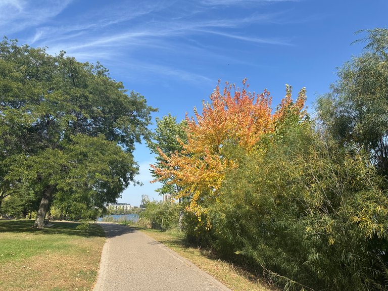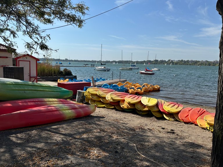 It’s a very diverse lake, with activities all around it, including beaches where there are lifeguards in the summer, plus play areas, benches, etc. And the route along the lake has two paths — one for pedestrians and one for cyclists.