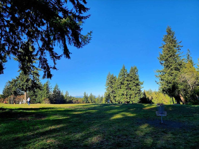 I can see the bright day from your picture, it's a good day to play under the shadow of the trees. I hope that your disc didn't fly to the moon 🤗🤗.