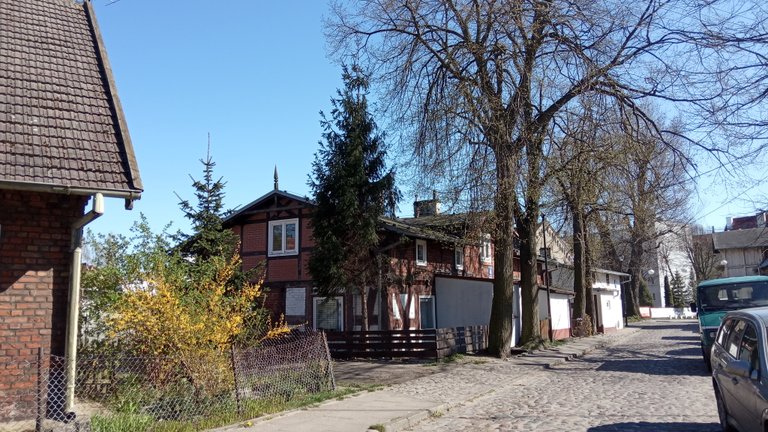 Klimaty Brzeźna (taki gdański Sopot, któremu nie wyszło) - z jednej strony klimatyczne domki, a dalej w tle czteropiętrowe bloki. Jeszcze dalej jeszcze wyższe.