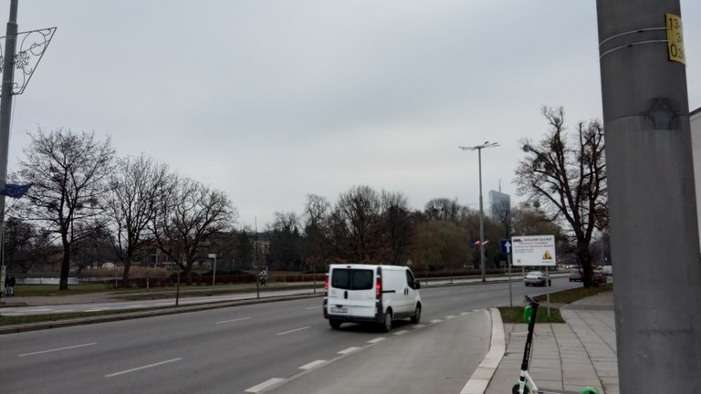Al. Grunwaldzka w Gdańsku-Oliwie. Wywalczyliśmy w końcu i mam w tym swój udział by na tym wąskim pasemku między jezdniami były nasadzenia. Te patyczki to nowe lipy, które mam nadzieję, że stworzą tu kiedyś aleję. Tak było przed laty - ale drzewa ustąpiły Św. Przepustowości