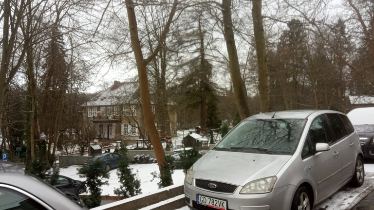 Temperatura +1 stopień, zimno, leży trochę śniegu, ale są to ilości śladowe. Trzeba jeździć ostrożnie. Nie było mowy o swobodnym zjeżdżaniu z górki.