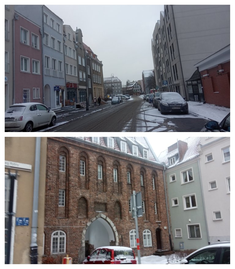 Widoki z Gdańska. Brama nad Motławą i ulica Warzywnicza
