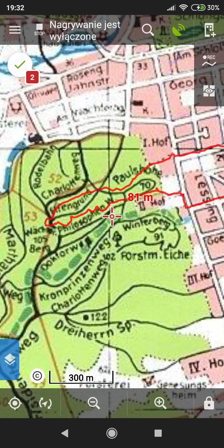 Po pracy był też czas na spacer po lesie. Znowu testowałem historyczne mapy w telefonie (aplikacja Custom Maps). Teraz już nie mam wątpliwości gdzie jest Dolina Elfów i dawny tor saneczkowy.