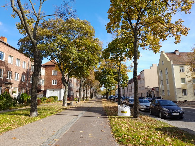 Ulica Kościuszki (dawny Ringstrasse). Podoba mi się ona. Domy po lewej mają nad wejściami rzemieślniczo-robotnicze rzeźby z czasów niemieckich