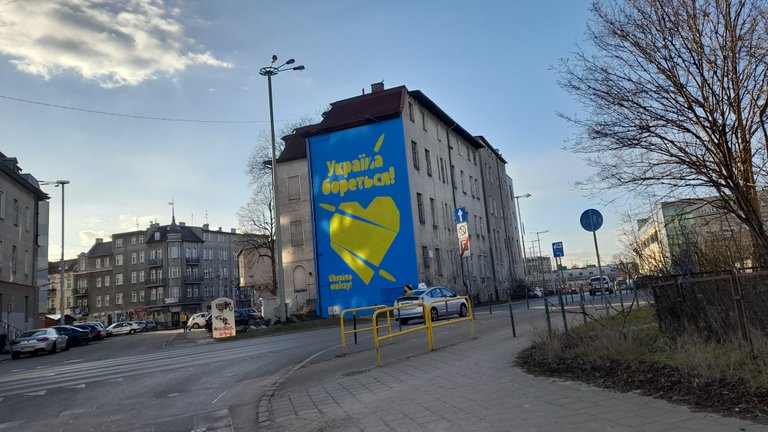 Pojedynek artystów wspierających Ukraińców. Wcześniej prezentowałem mural na Chłopskiej. Powstaje też nowy mural łączący Putina ze Stalinem itp