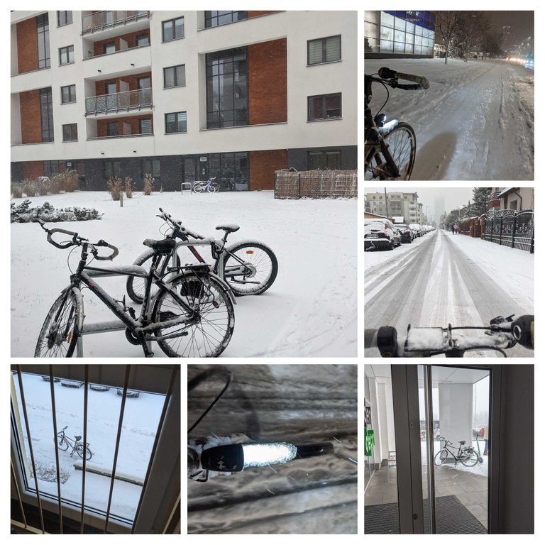 Niespodziewanie zmieniły się warunki pogodowe i przyszło mi wczoraj jeździć po zaśnieżonych ulicach. Tak na prawdę to miałem w głowie możliwość rezygnacji - bo świeży śnieg może oznaczać zaspy i brak przejezdności. Okazało się jednak, że rower daje radę a śnieg był okazją do większego zarobku. A takich okazji ostatnio za wiele nie miałem.