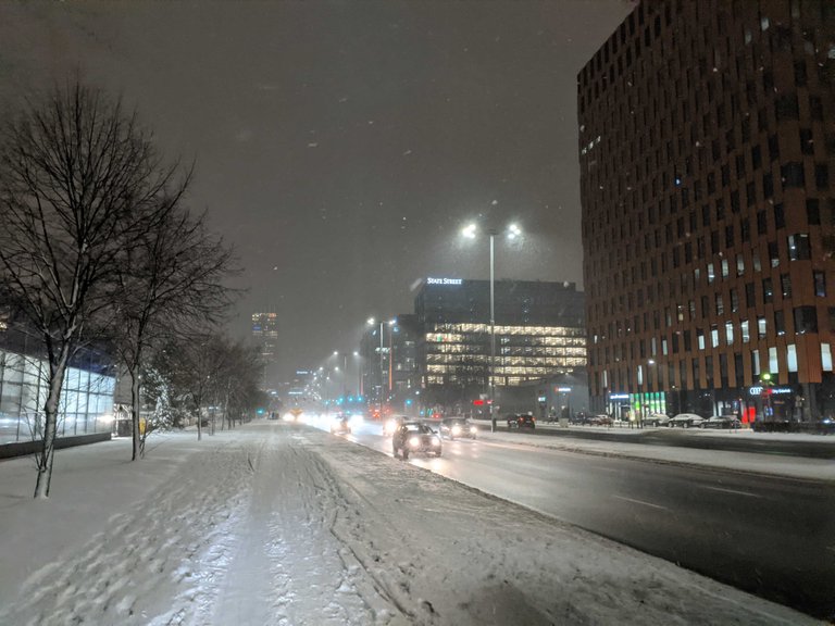 Najprzyjemniej jeździło mi się trzeciej godzinie pracy. Na mapie są to nr 5,6,7,8,9. Krótkie zlecenia po lokalnych uliczkach. Zdrowy wysiłek, ciekawe okoliczności. Myślałem, że takie warunki są dla mnie wymarzone - nie jestem typem kuriera wyścigowca. W śnieżnych warunkach po prostu brnąłem do przodu spokojnym tempem bez problemu realizując kolejne zamówienia. Bez problemów z zakorkowanymi ulicami.