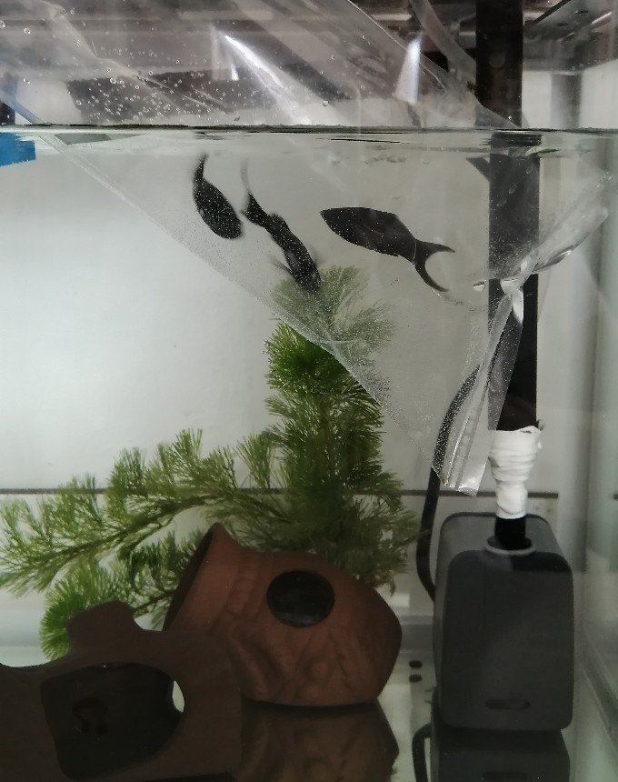 早前在淘寶淘了一個迷你水族箱,今天去我家鄰近的菜市場買了三條黑摩利回來。