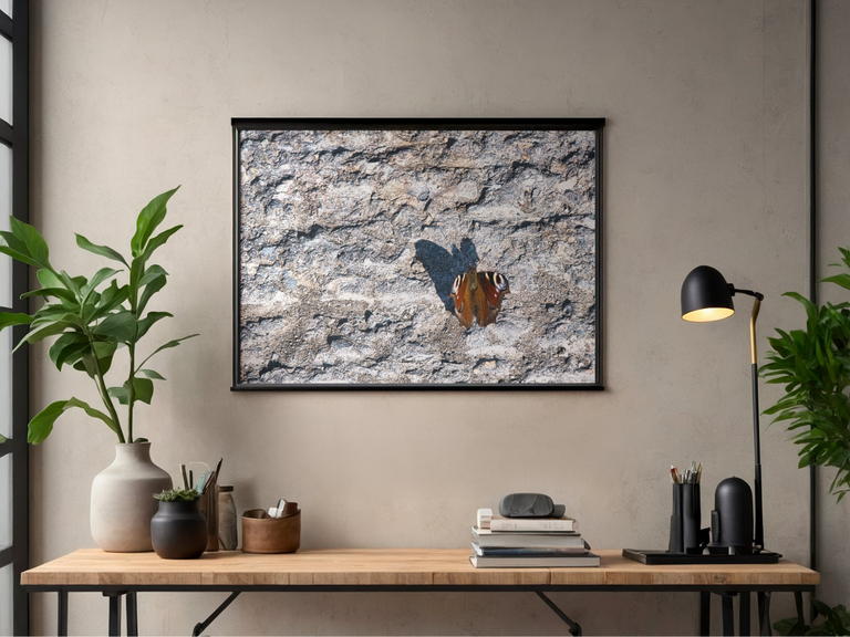 The last one is a butterfly on a rough, textured surface. The colors are more muted and calming, and that grainy backdrop could work really well in a simple, minimal space.