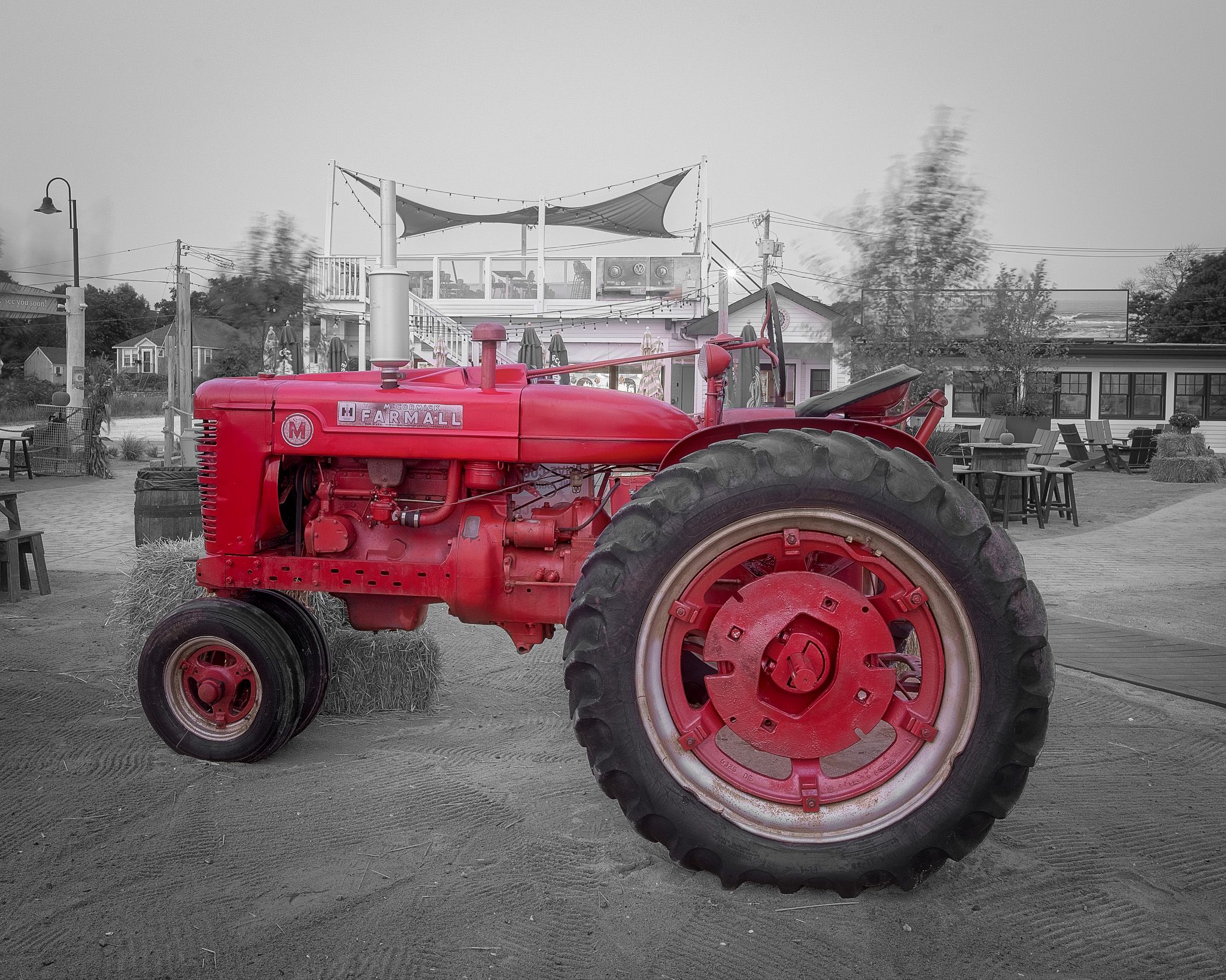this tractor was in the outside area at Cisco Breweries recently along with a few hail bails here and there, probably for some themed event they were having