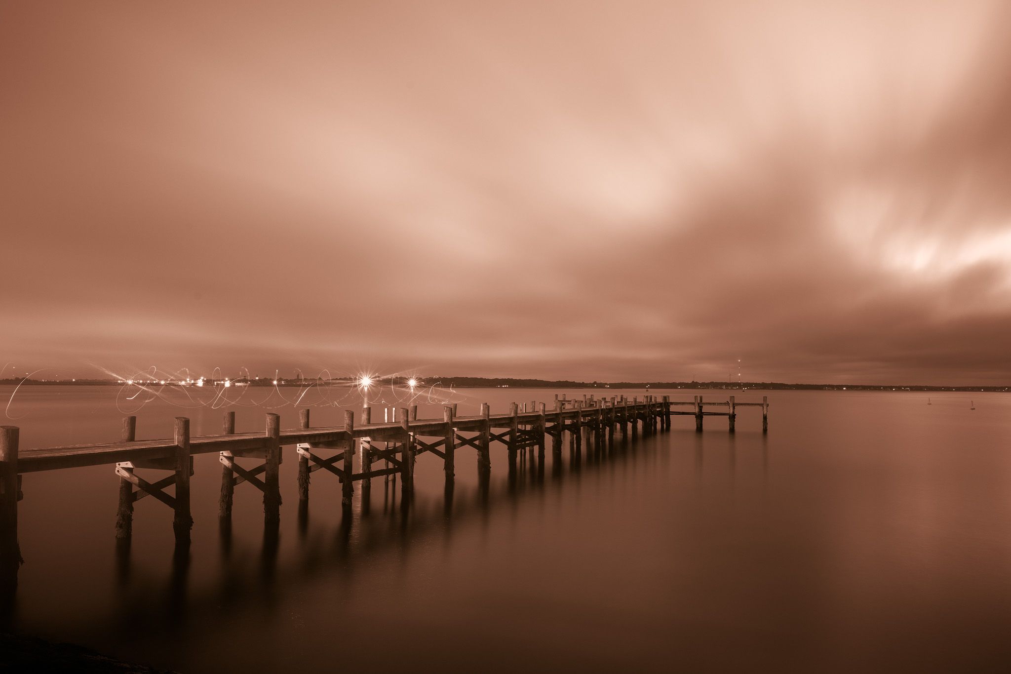 Starting with this shot on the pier by the boat ramp and one end of the harbor walk here in New Bedford MA, I was trying a bit of light painting and this one did not work as planned but when I tried it in mono I kind of liked the effect