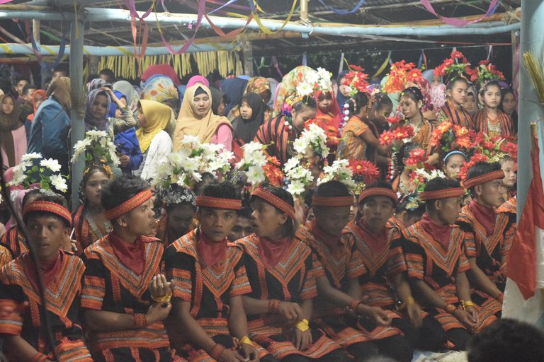 The saman banquet, started on the first night and will be repeated for 3 nights. This banquet will pit the skills of the Host group and the Guest group. Each side has a youth group as well as a parent group. 1 group can be 20 people or more. Traditional nuances are visible from customary clothing used, ornaments made of woven pandanus and other trinkets.