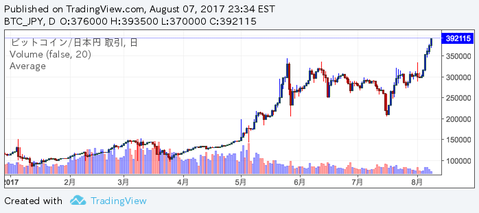 Bitcoinの相場が39万を超え、40万を伺う展開になっていて軽くビビっています。