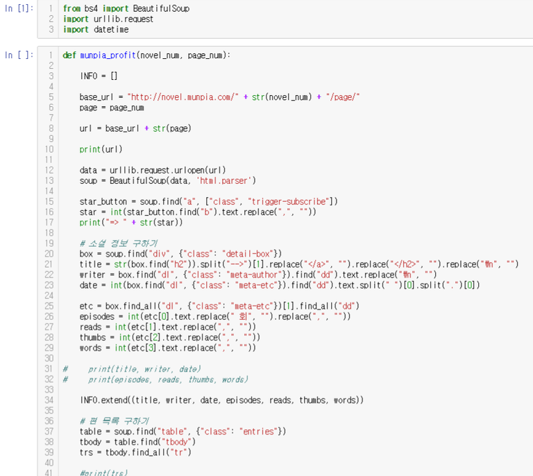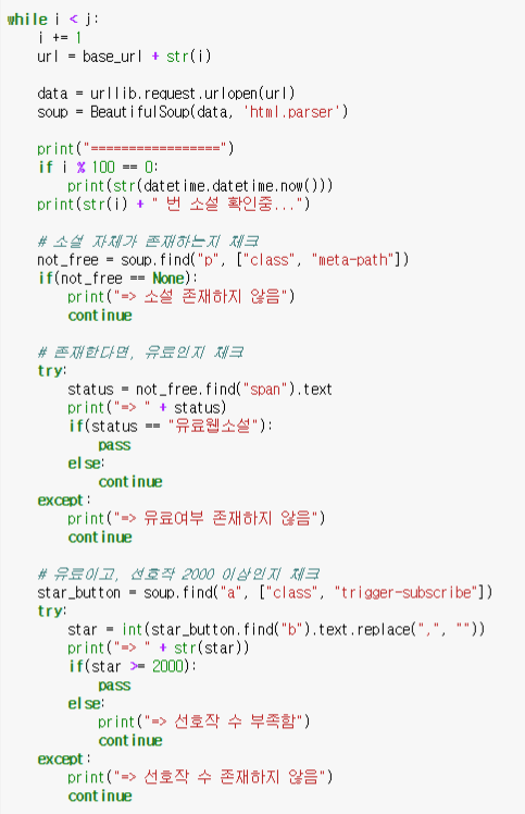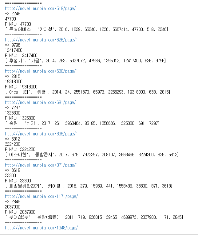 문피아에서 따로 API를 제공하고 있지 않기 때문에 모든 작품을 파이썬으로 살펴봤습니다.