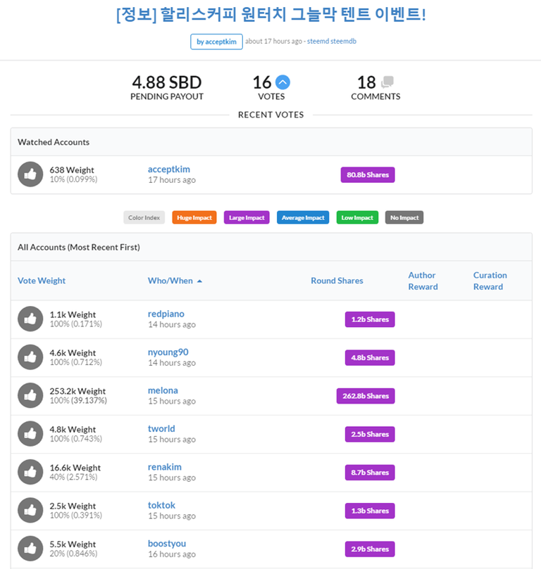 제 이야기를 하자면 보팅퍼센트를 낮출수밖에없었던게 보팅을 많이하다보니 게이지가 무지막지하게 하락을 해서 어쩔수없이 낮췄네요 모든글들에 100프로 보팅하고싶은 마음은 굴뚝같습니다 확인하는 방법에 대해 알려주셔서 감사합니다^^