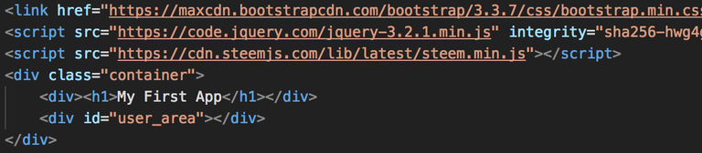 이로써 지금 필요한 라이브러리들을 불러오고, 앱에서 사용될 기본적인 틀을 설정 한것입니다. 지금 입력하신 것은 HTML 입니다. 웹페이지는 크게 HTML과 자바스크립트로 나뉘는데, 정적인 부분을 정의하는데 HTML을 사용하고, 자바스크립트를 이용해서 이부분을 제어할 수 있습니다.