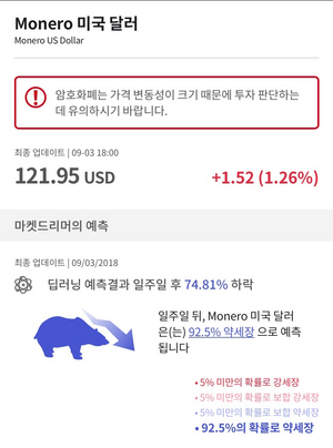 73, 74% 떡락 실화냐.... 이 어플말대로라면 네오와 모네로 가지신 분들은 빤스런을 하셔야겠습니다...