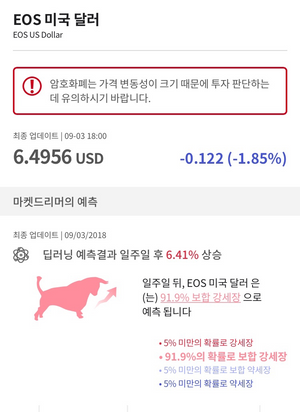 이오스는 6.41% 오를거라 예측하고 있습니다.
