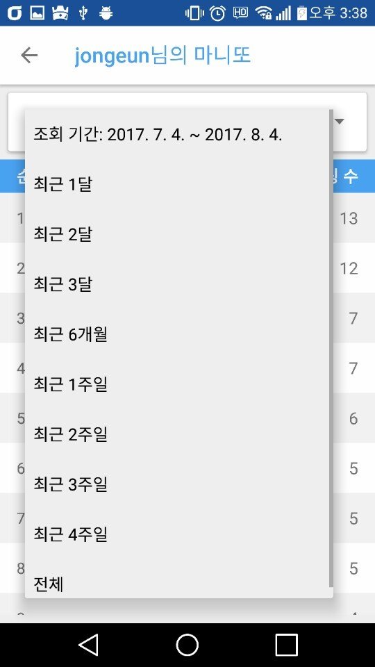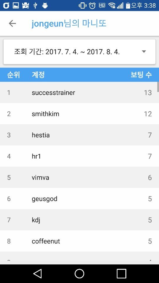 최근 한달 동안의 저에게 보팅을 한 사용자와 횟수를 보여주는 결과 화면입니다.