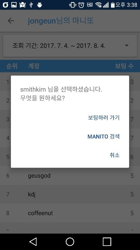 특정인에게 보팅을 많이 한 사용자를 특정인의 마니또라고 정의하여, 앱 제목을 Steemit manito로 결정했습니다.