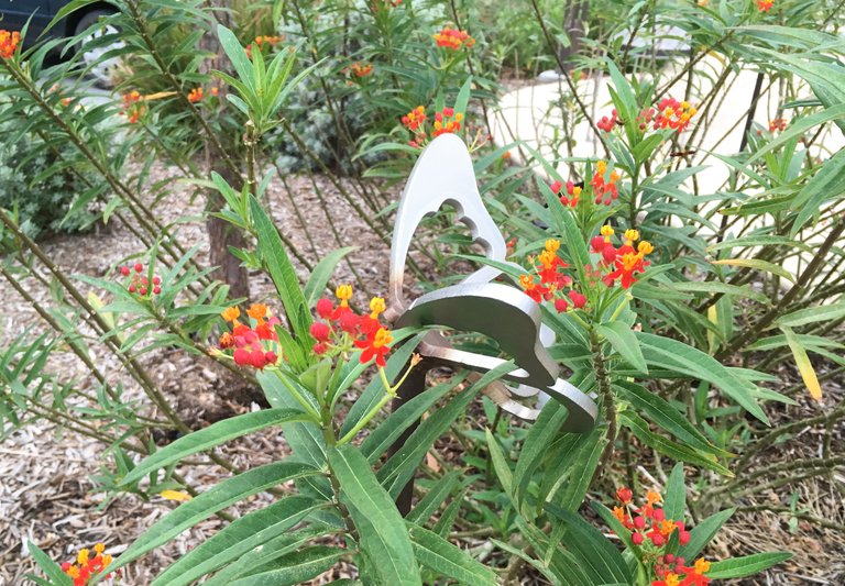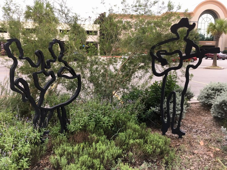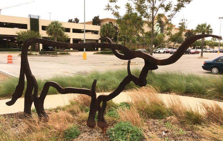 빌딩 옆에 작은 공원을 만들고 두꺼운 철판으로 만든 조각품을 설치했습니다. 걷지 않으면 갈 일 없는 장소인데 뜻하지 않게 보네요.