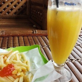 menikmati indahnya liburan sebelum idul adha bersama keluarga, pilihan pada jus mangga dan avocado menu kentang goreng dan canai susu keju disini banyak pilihan menu selalu juice yang telah kami pesan.