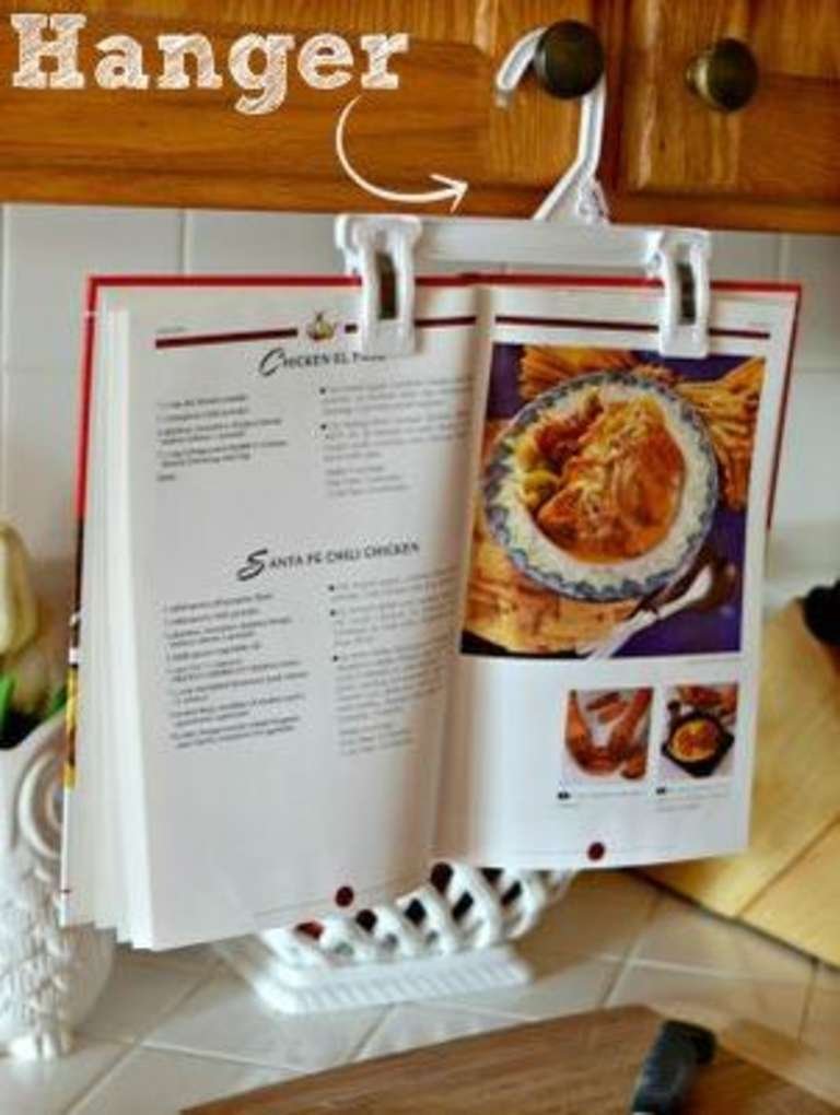 Use a hanger to hang your recipe book or cookbook.