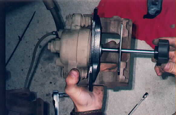 Good tip on how to push the wheel cylinder piston in so you can get the caliper over the rotor.