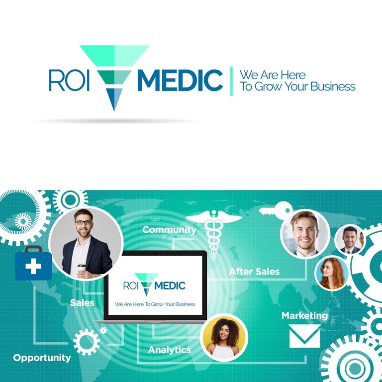 The customer is ROI MEDIC, and the logo represent a simpliest funnel chart for leads conversion.