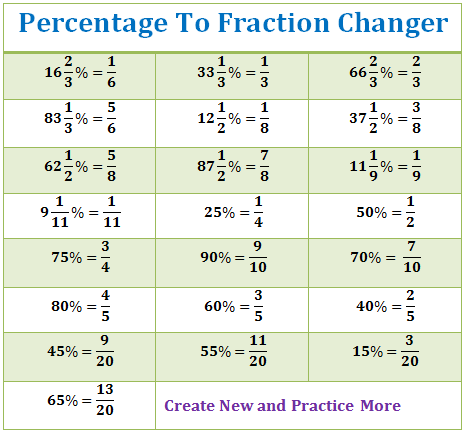 Converting From Percents To Fractions
