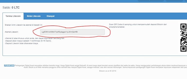 Setelah itu kembali ke halaman blocktrades, kemudian kopi wallet vip di kolom LTC addres, klik get a new deposit. Setelah itu akan muncul perintah seperti berikut ini.