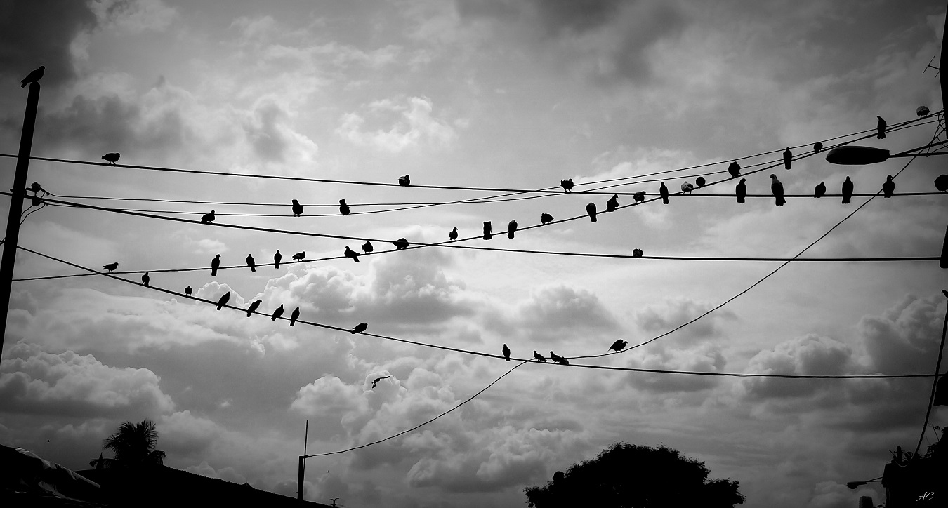 Are the birds on crossed lines?