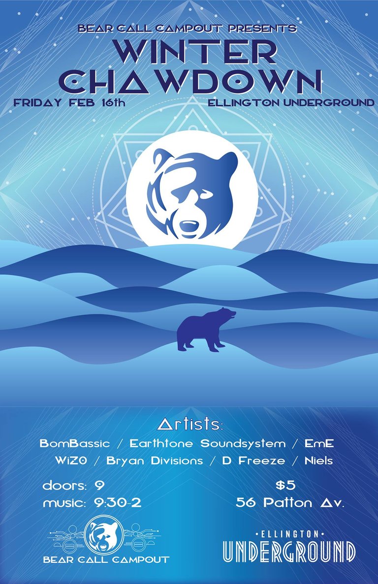 Last night I had an amazing show in downtown Asheville! I was given the opportunity to perform my live set at the Bear Call Winter Chawdown at Ellington Underground, a dope new venue here in Asheville NC.