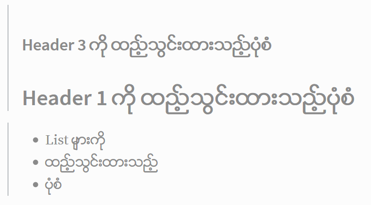Blockquote မ်ားအထဲတြင္ Header မ်ား၊ List မ်ားကို ထည့္သြင္း အသံုးျပဳႏုိင္ပါသည္။