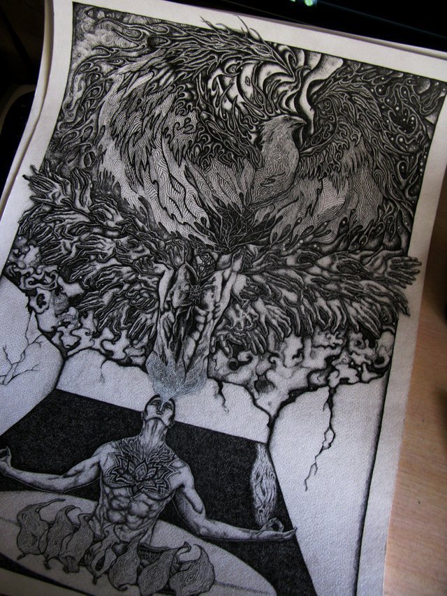 My first big picture in Dotwork 😎😅 "Rebirth" 🐦