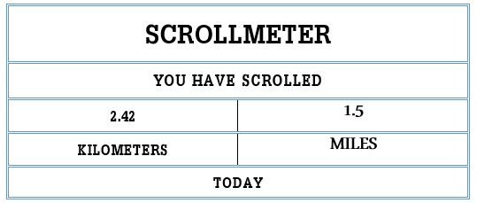 There should be an application that counts the length of user's scrolling on Steemit. Scrollmeter! To show you how many kilometers or miles you scroll every day your feed.