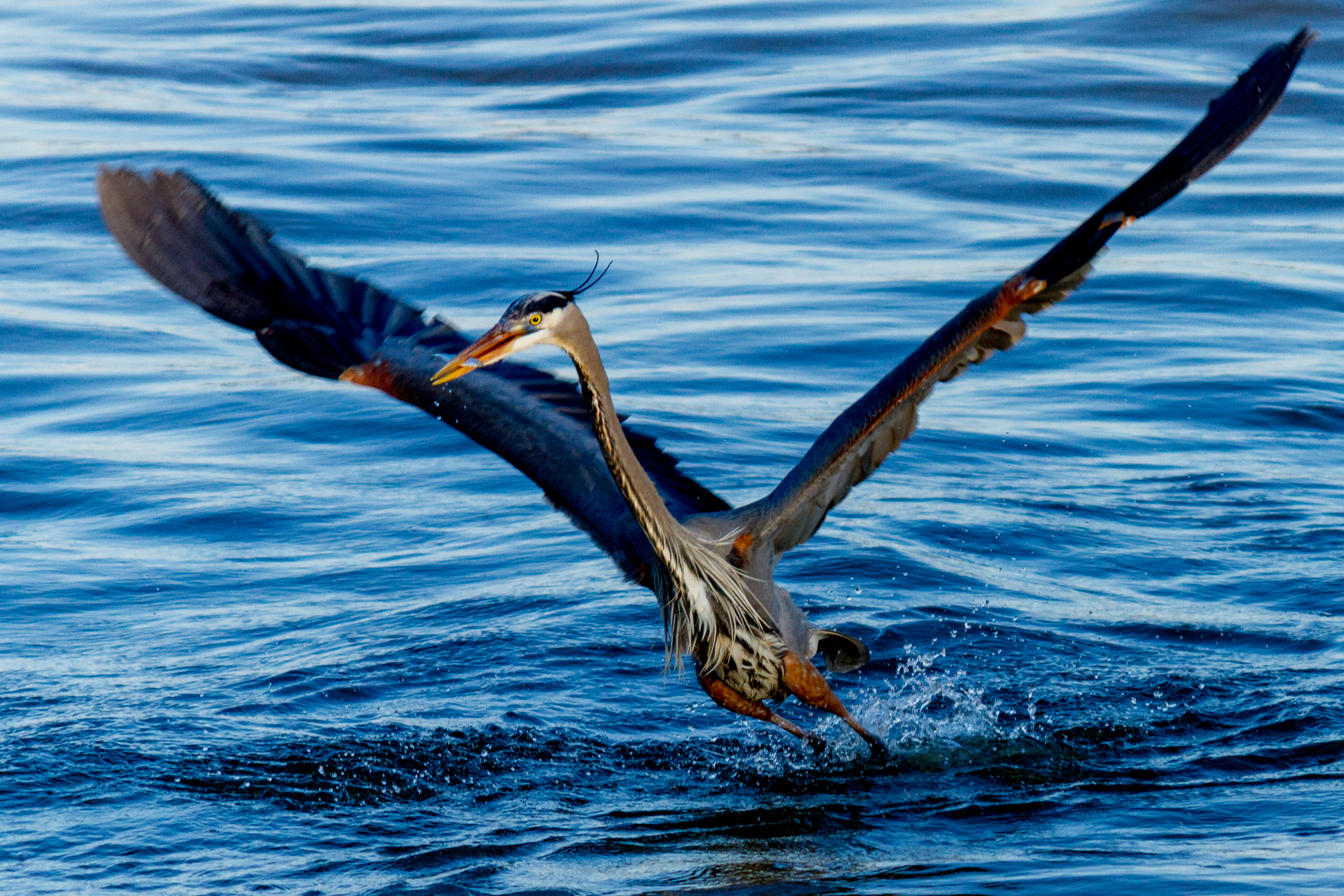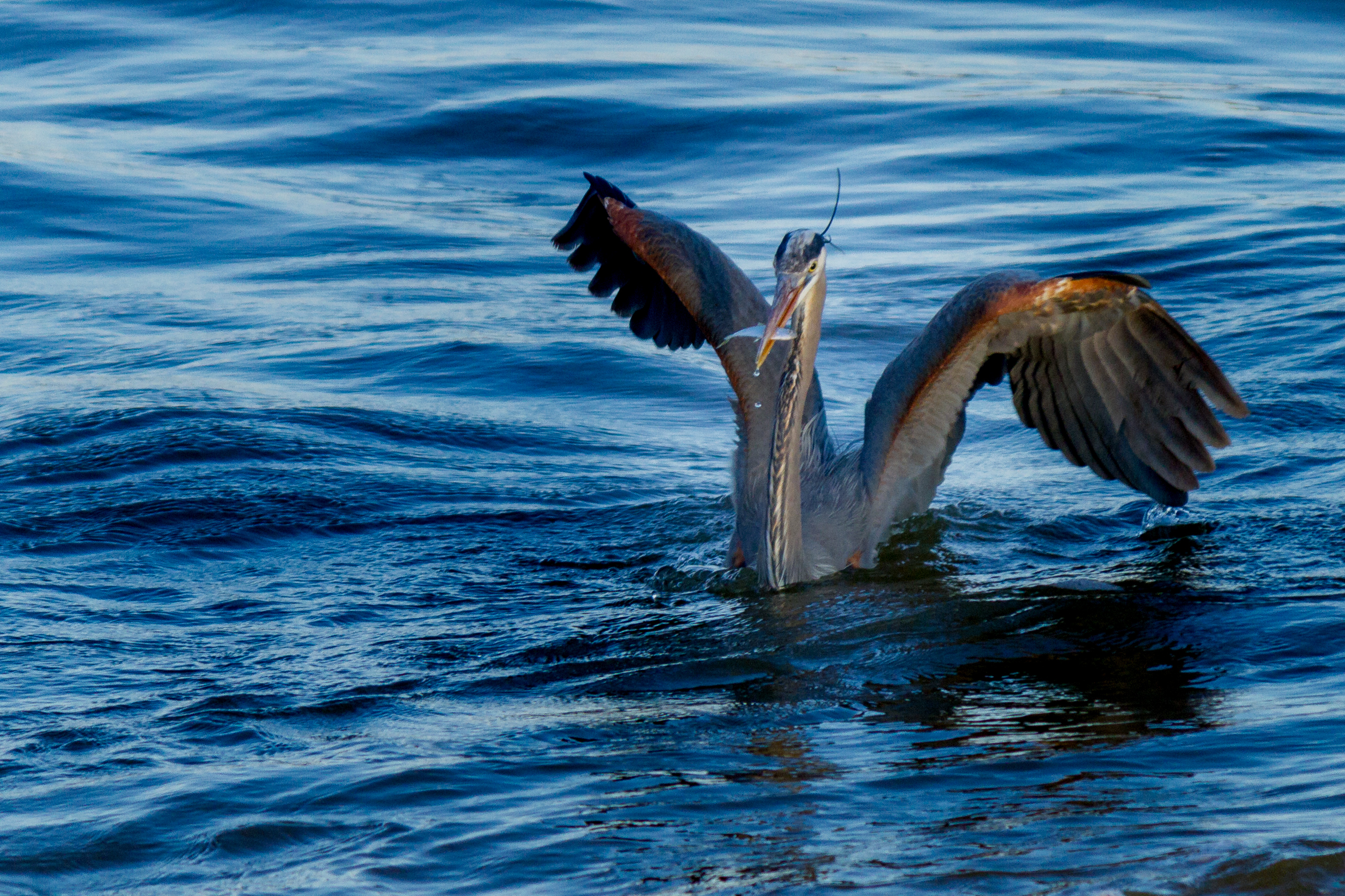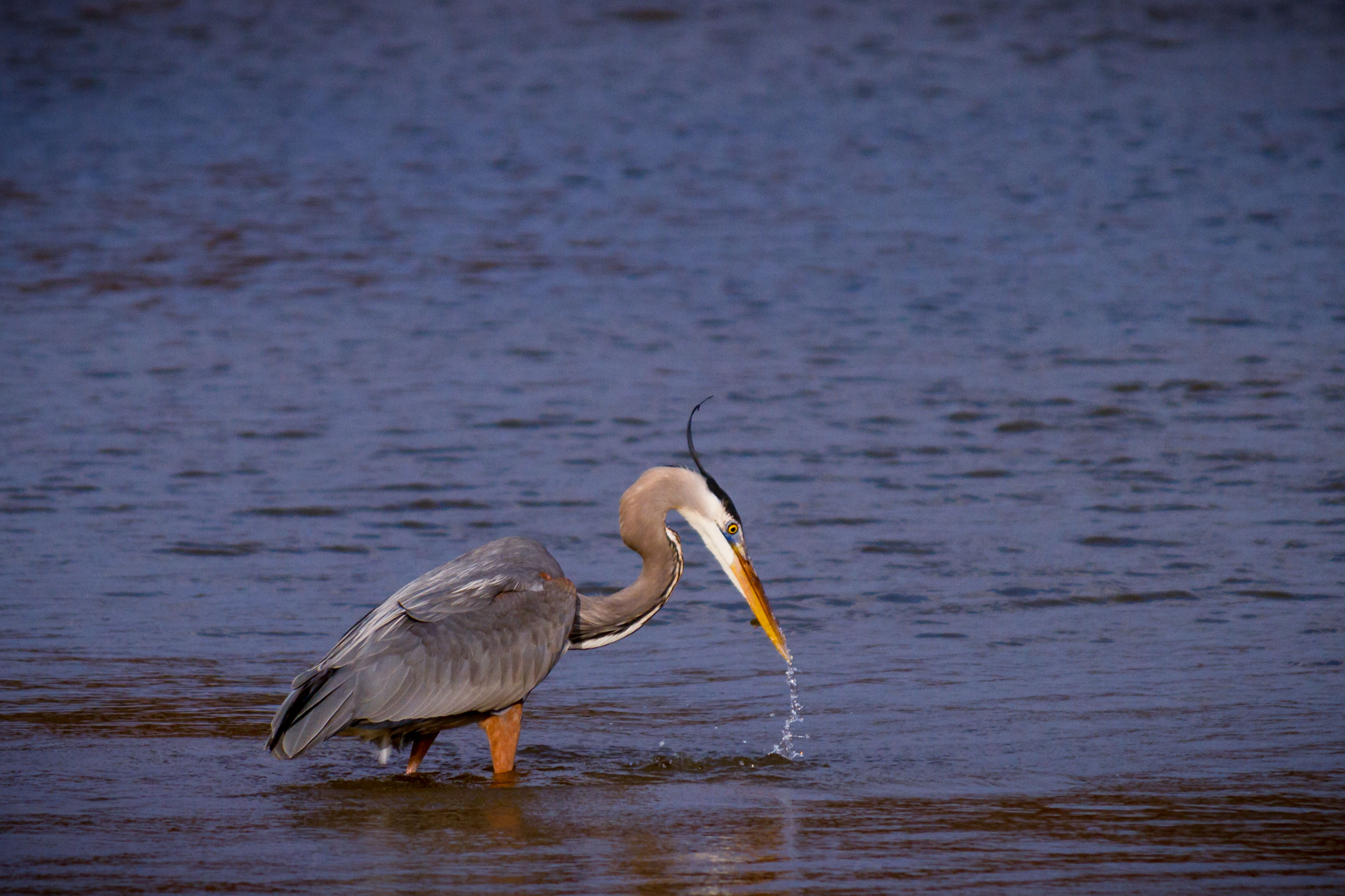 The great blue heron was fishing. Every time he would put his head under water I would shoot a burst of photos.