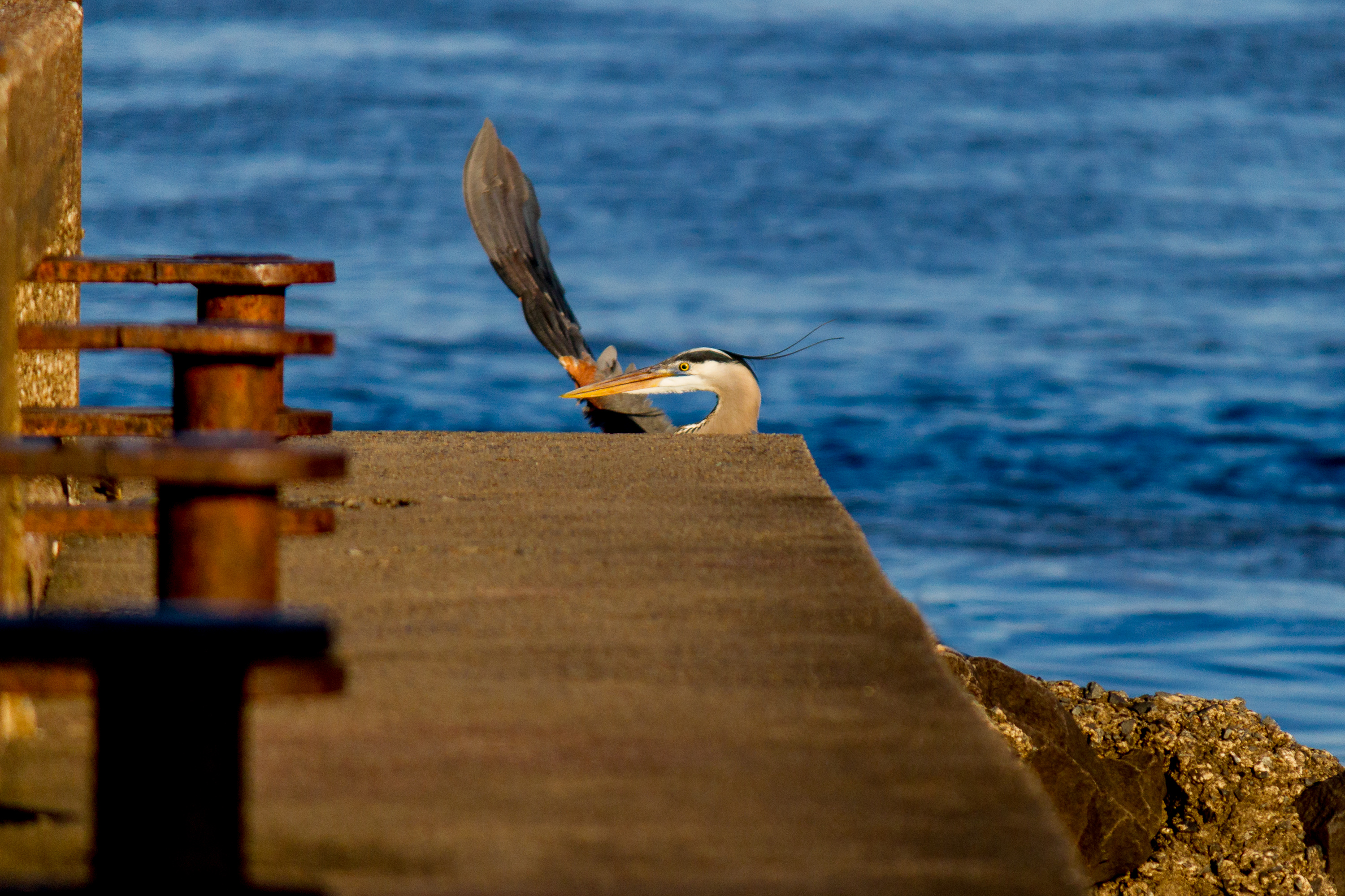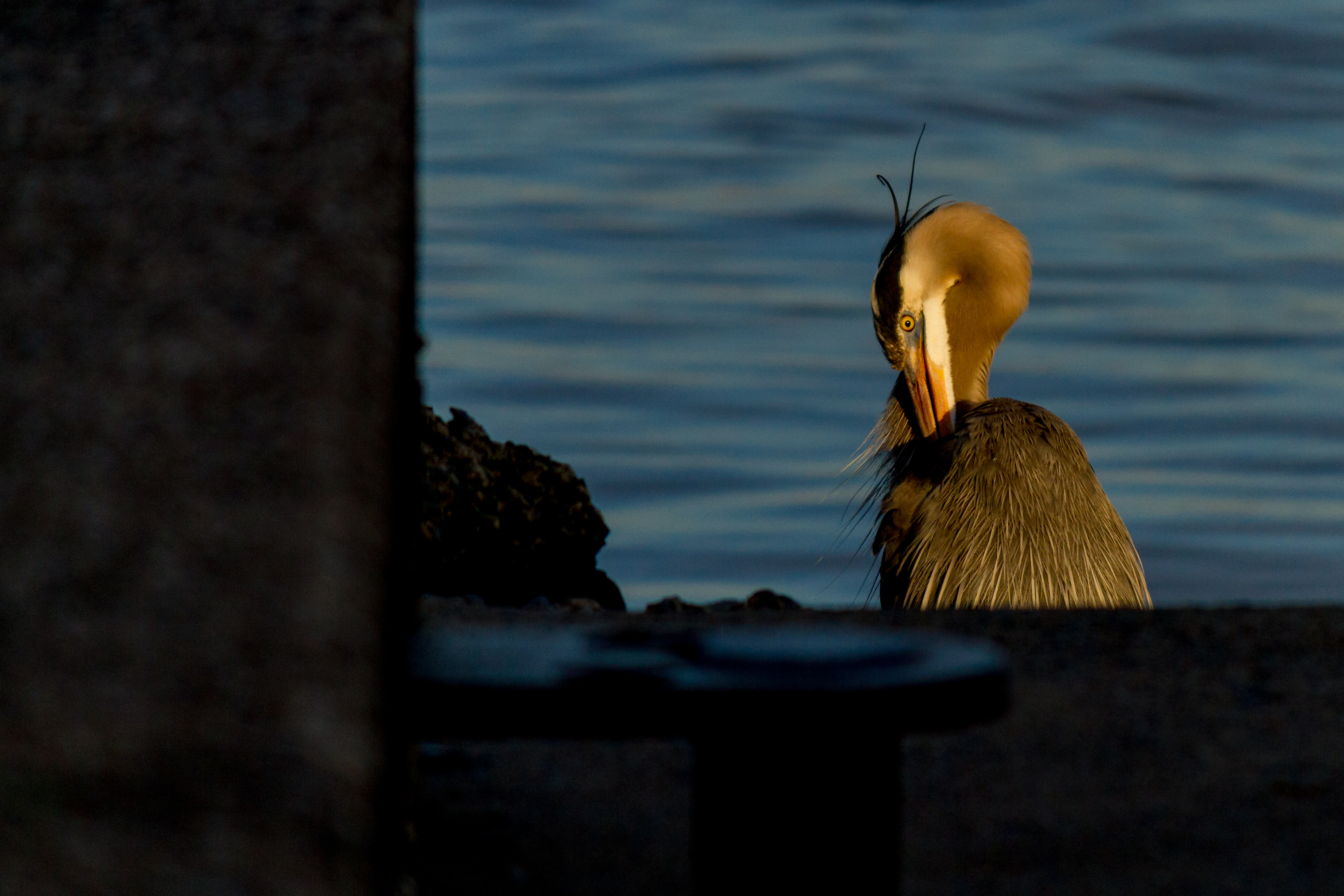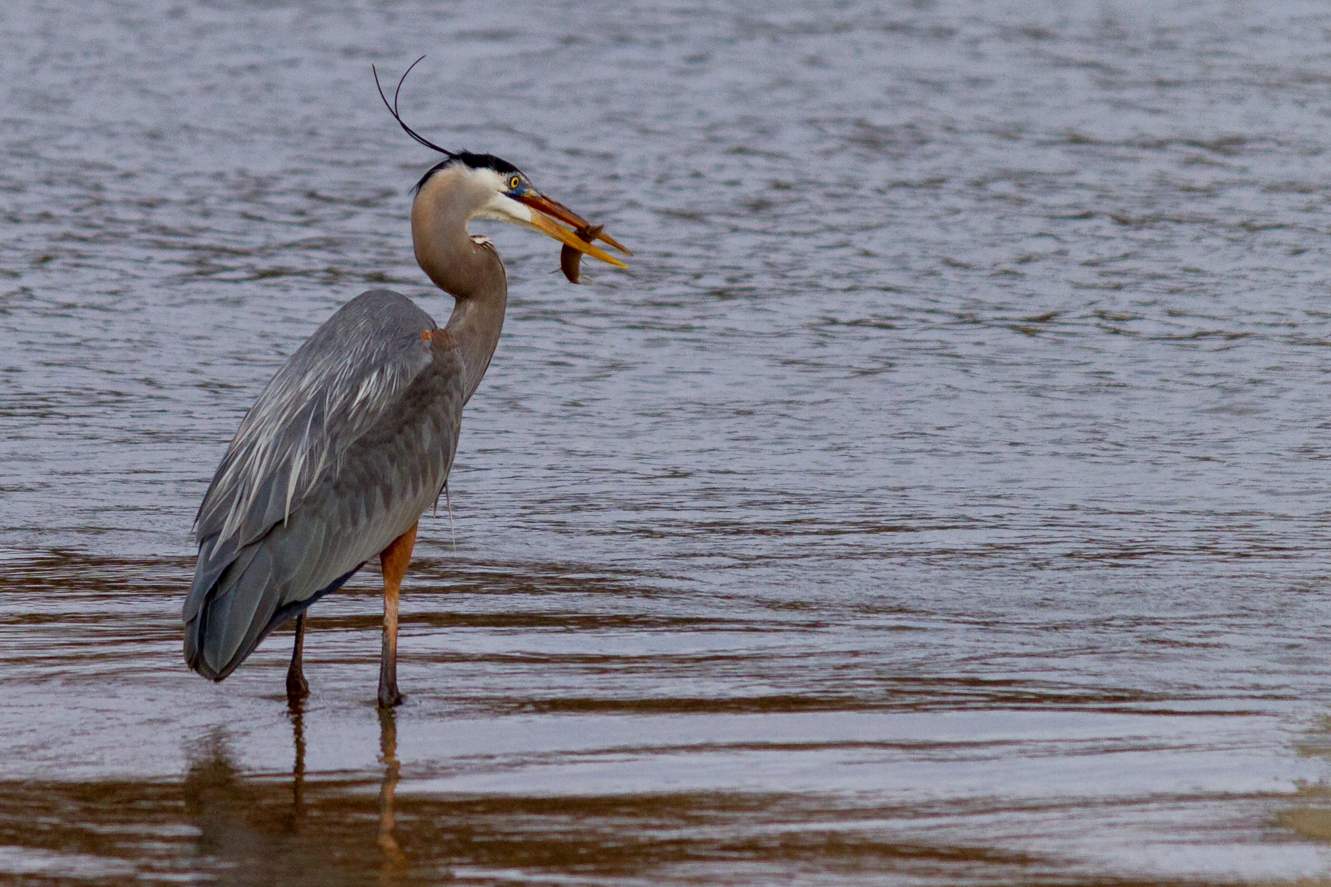 The great blue heron was fishing. Every time he would put his head under water I would shoot a burst of photos.